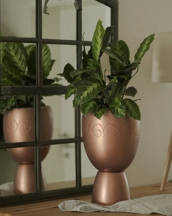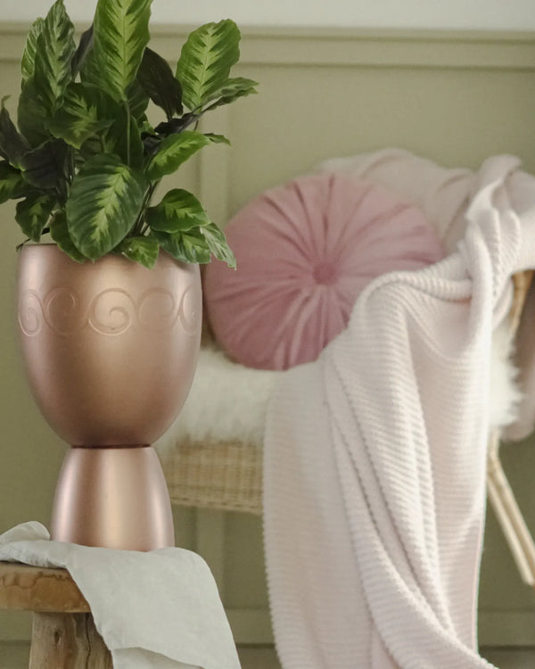Diese Vase bekam einen frischen Look in zwei Schritten: zuerst RAL 3003, dann abgeklebt und in RAL 3015 darüber gesprüht. Das Ergebnis: ein klarer Farbverlauf in kräftigem Rot und zartem Rosa, de...